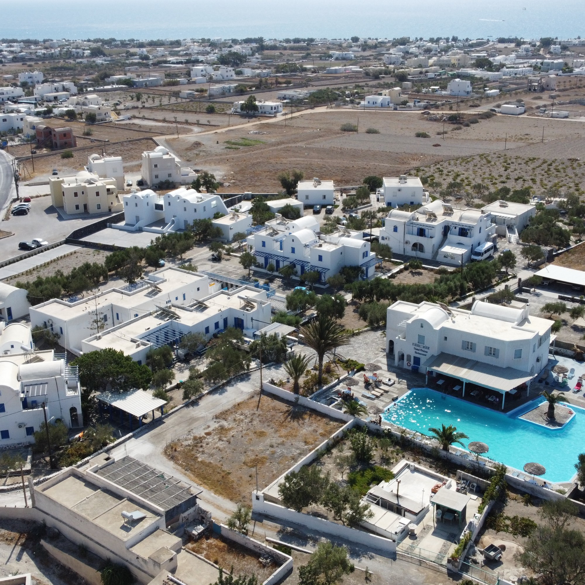Perissa is one of the largest villages of the island. Public transport on the island is conveniently frequent and the bus stop is just 50m away from the entrance of the hotel. The nightlife is colorful and offers a great variety of activities. From the hotel you can enjoy the most beautiful sunset in Santorini.